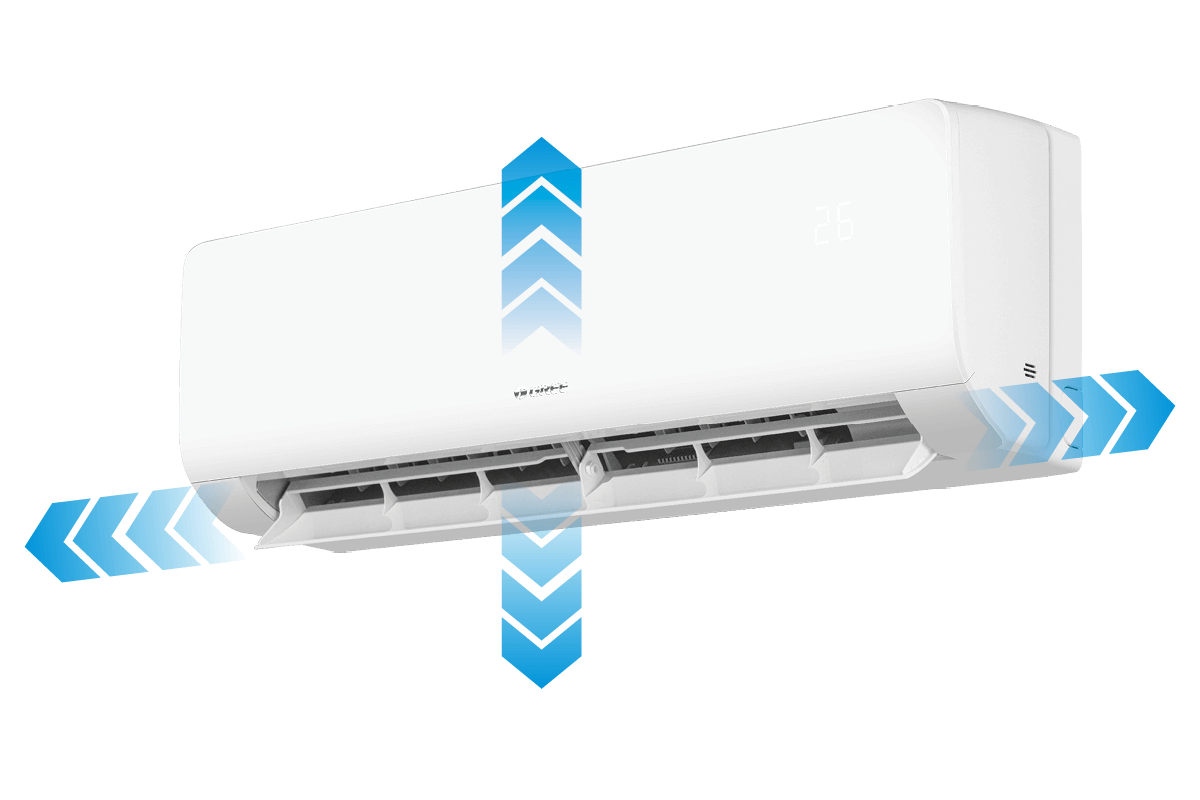 Naprava omogoča samodejno premikanje loput navzgor in navzdol (navpično) ter levo in desno (vodoravno). S tem se doseže boljši pretok zraka po celotnem prostoru, kar pomaga preprečiti vroča ali hladna območja.