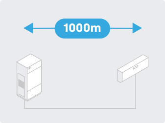 Največja razdalja med notranjimi enotami je 40 metrov, celotna dolžina napeljave pa doseže kar 1 km.